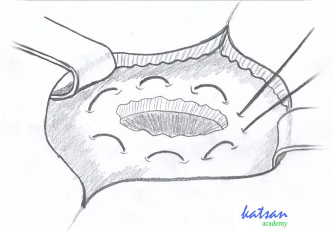 The purse-string suture technique is a continuous stitch that is used as a bag constrict thread to...